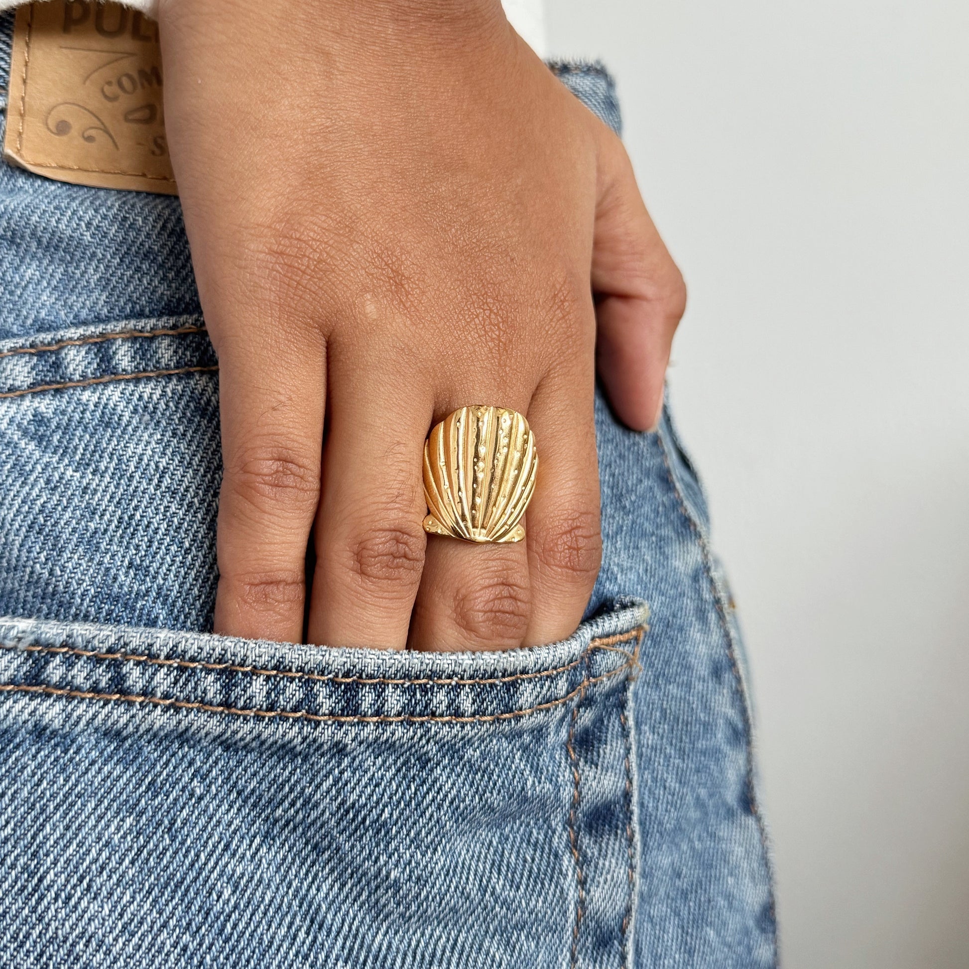 Un anillo chunky que destaca por su diseño audaz y lleno de textura. Con carácter y presencia, es ideal para quienes buscan accesorios statement que eleven cualquier look con un aire sofisticado y veraniego a la vez.