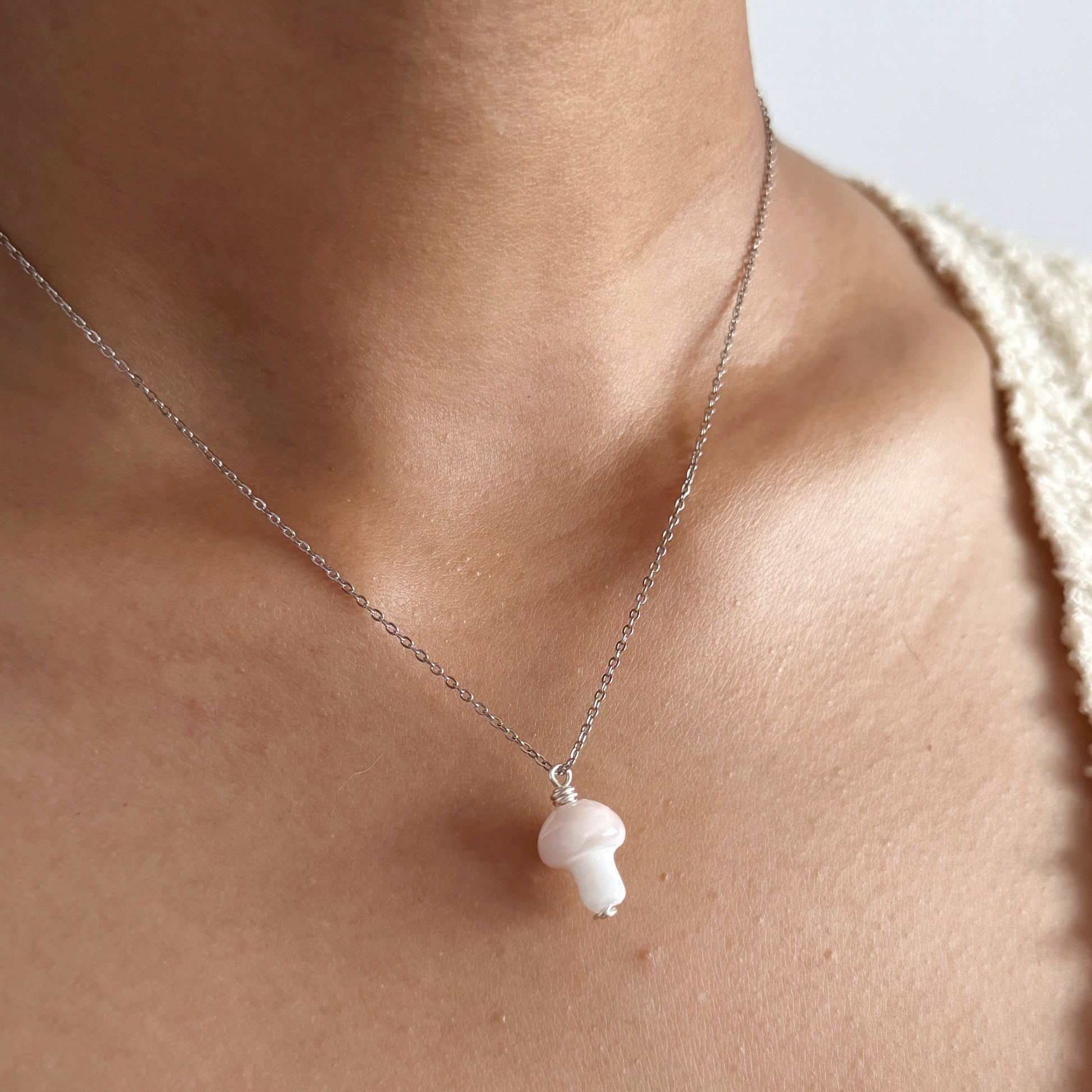 Una pieza encantadora y llena de personalidad, protagonizada por un dije en forma de hongo hecho de vidrio. Cada colgante tiene una silueta delicada y alegre, con una paleta de colores vibrante que permite elegir el que más conecte con tu estilo.