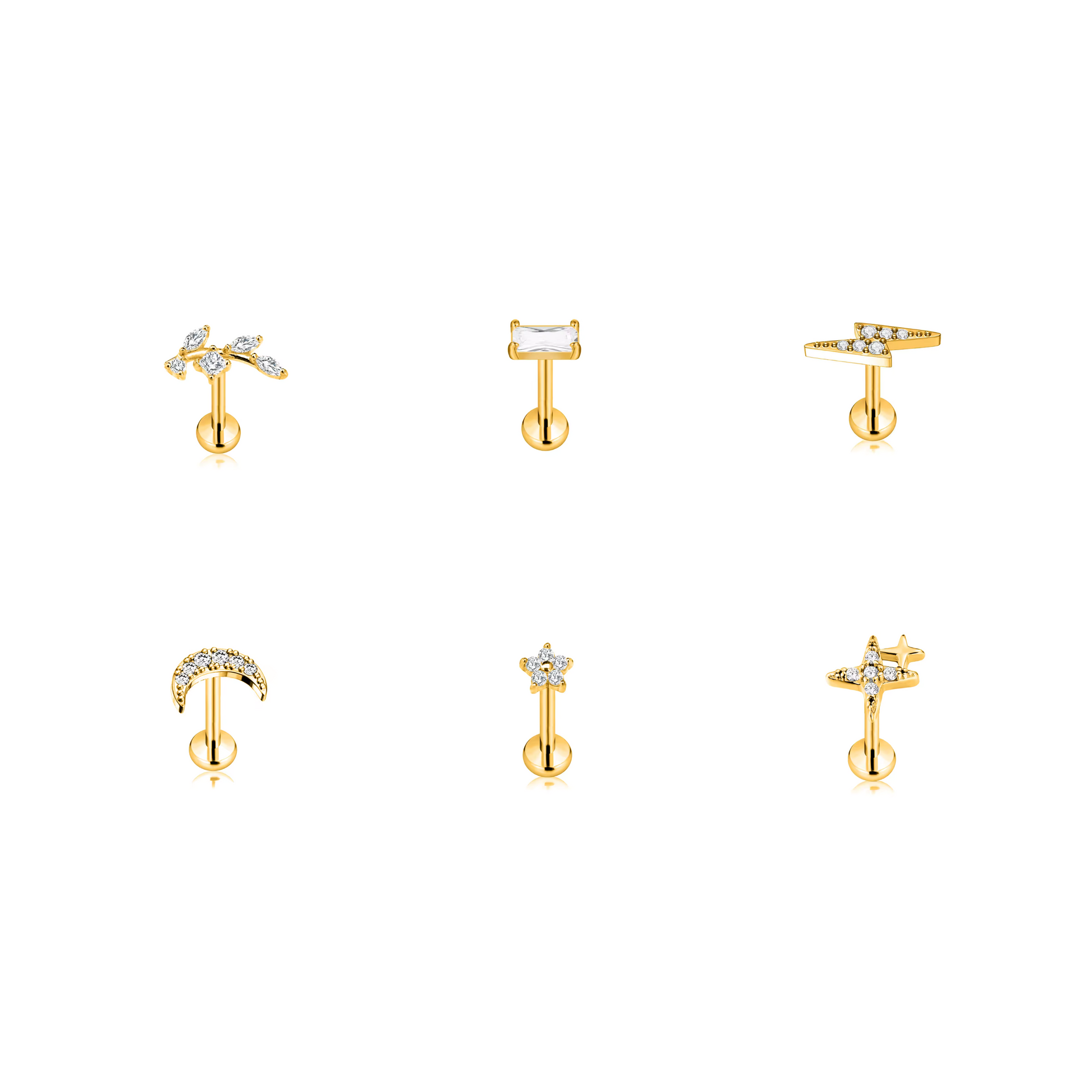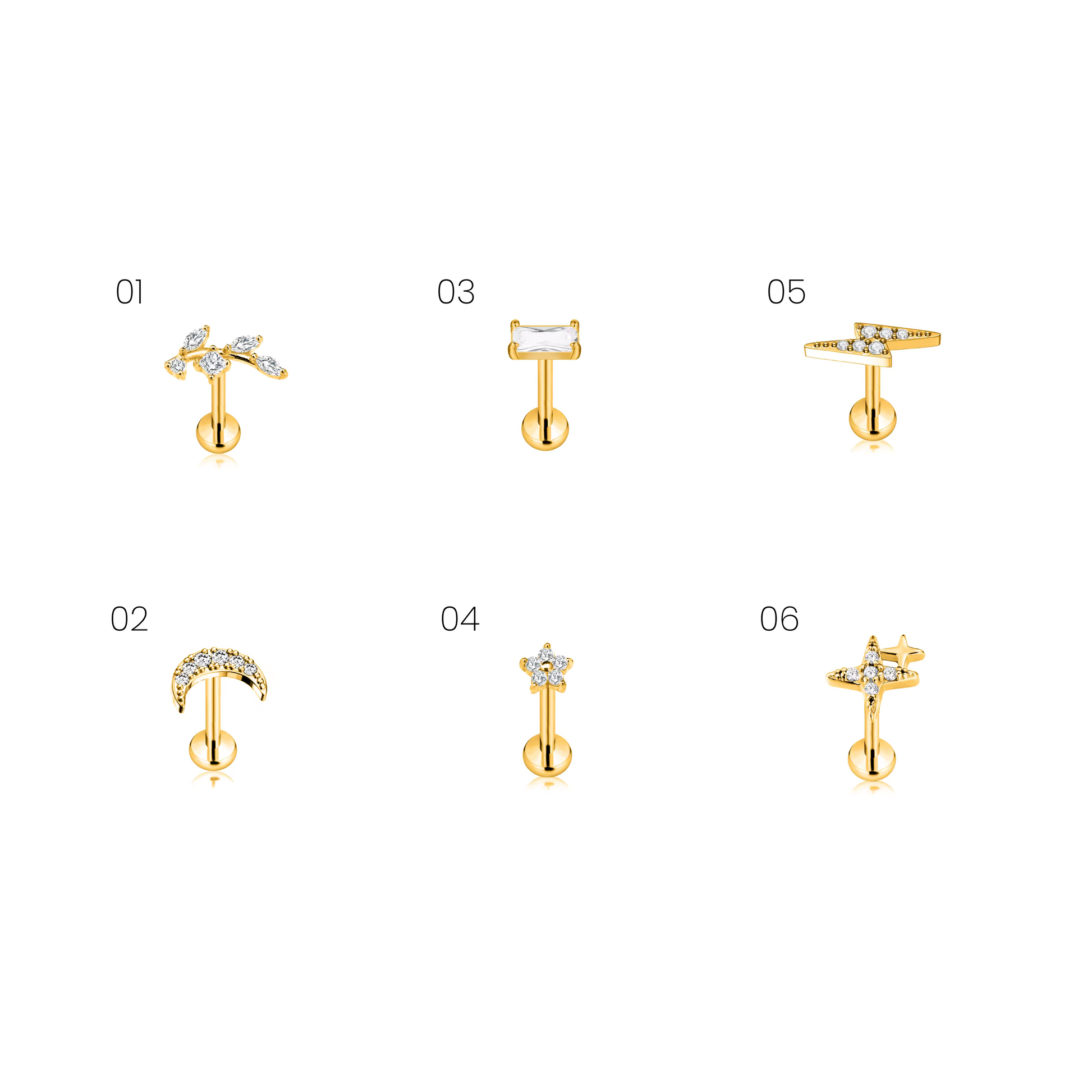 Diseños modernos y versátiles, perfectos para combinar entre sí o lucir de manera individual. Están elaborados en Titanio G23 ASTM F136, un material de grado implante, hipoalergénico, ligero y resistente a la corrosión, ideal para piel sensible y perforaciones nuevas.